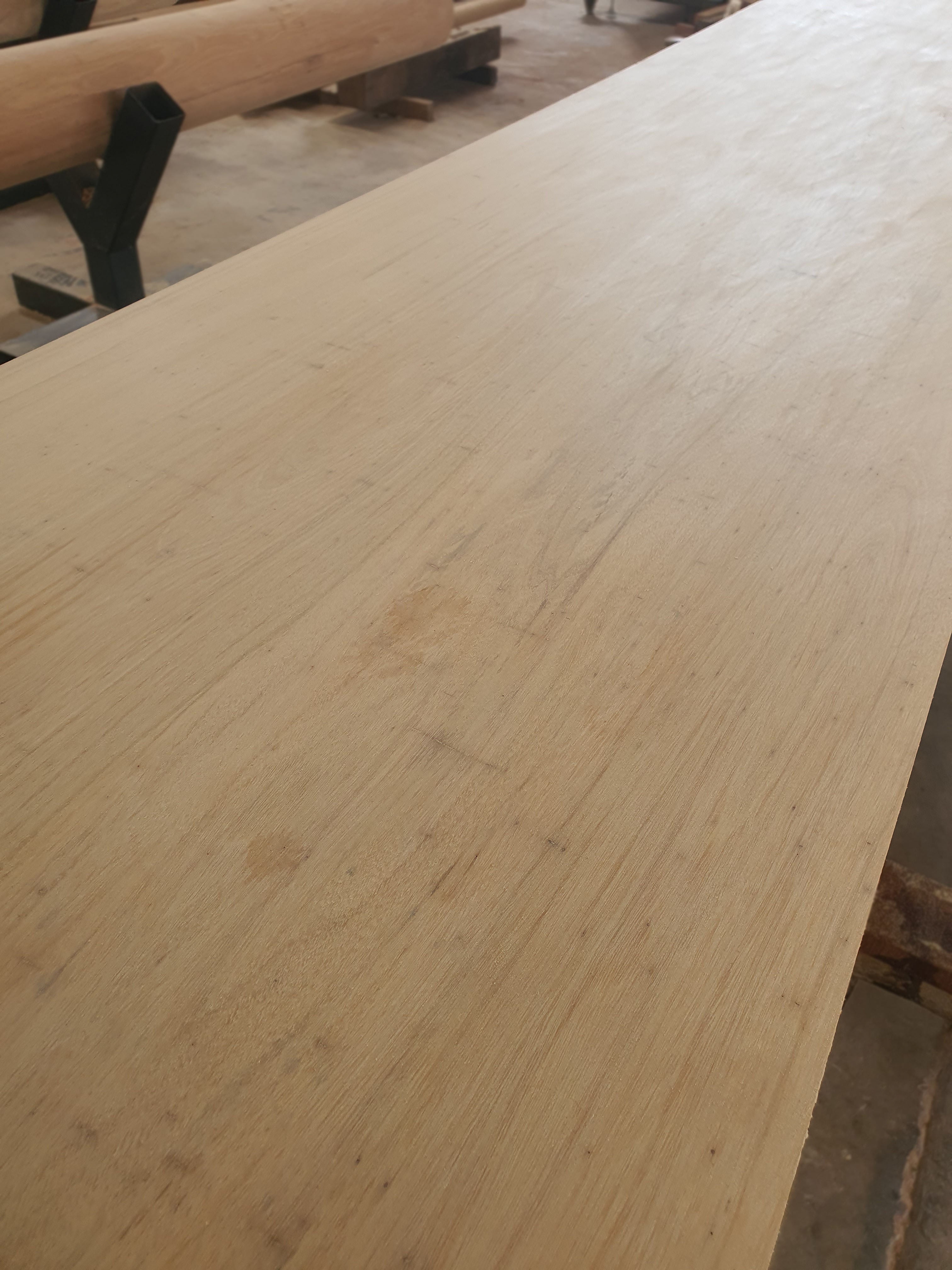 When freshly sawn, the heartwood of Chengal is light yellow-brown with a distinct greenish tinge, darkening on exposure to dark purple-brown or rust red. With fine and even texture and interlocked grain pattern.