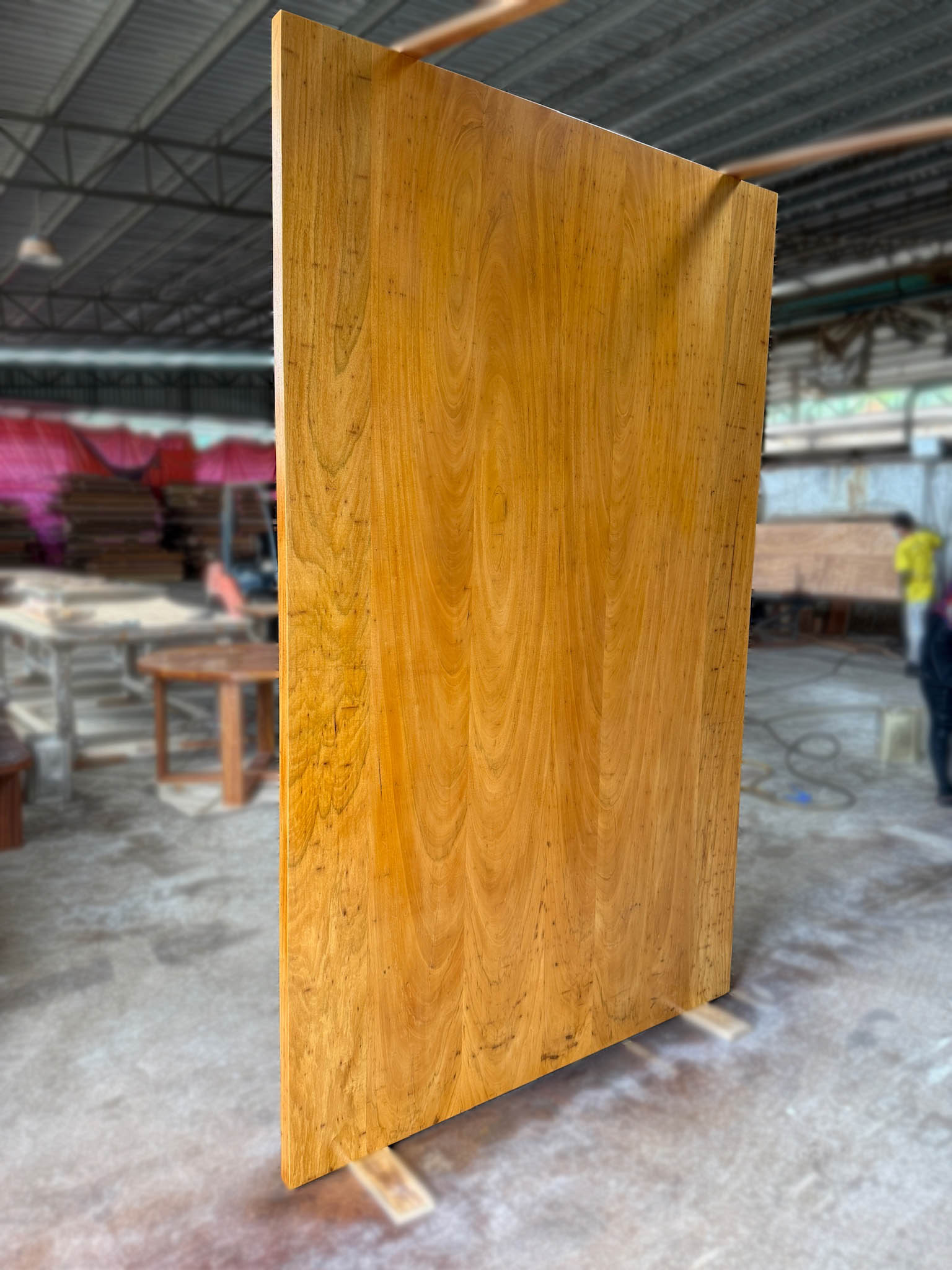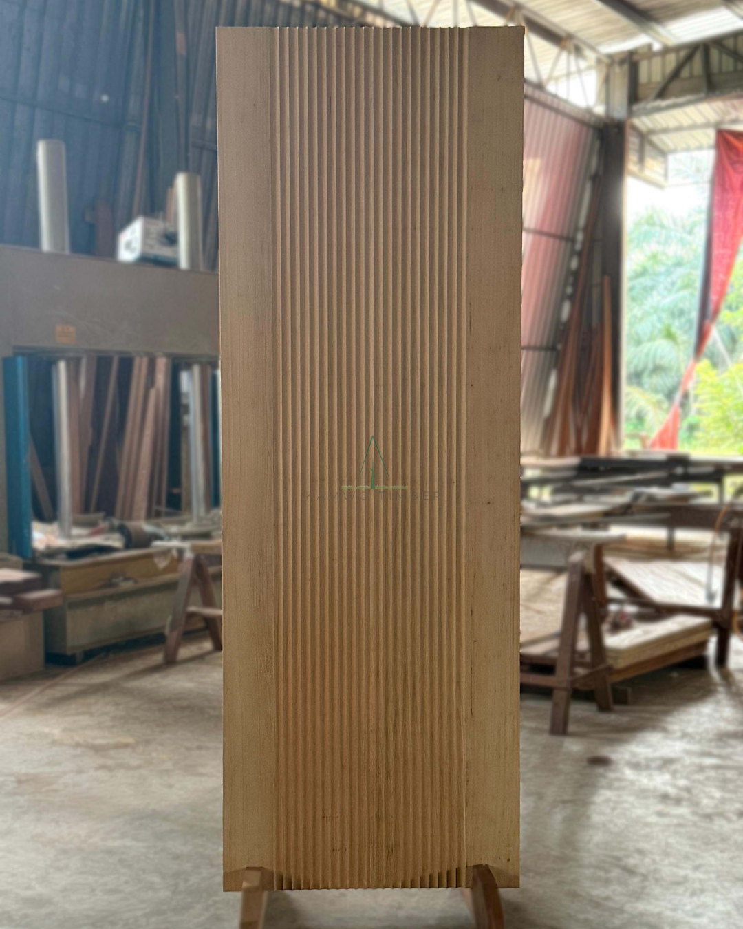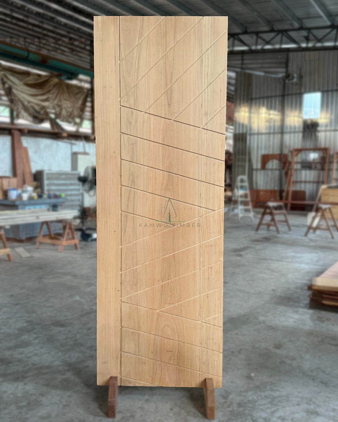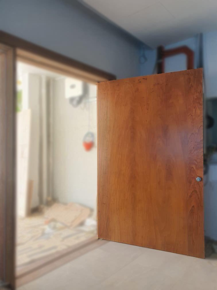 • A large pivot door made out of full solid chengal hardwood with lacquer finished.
