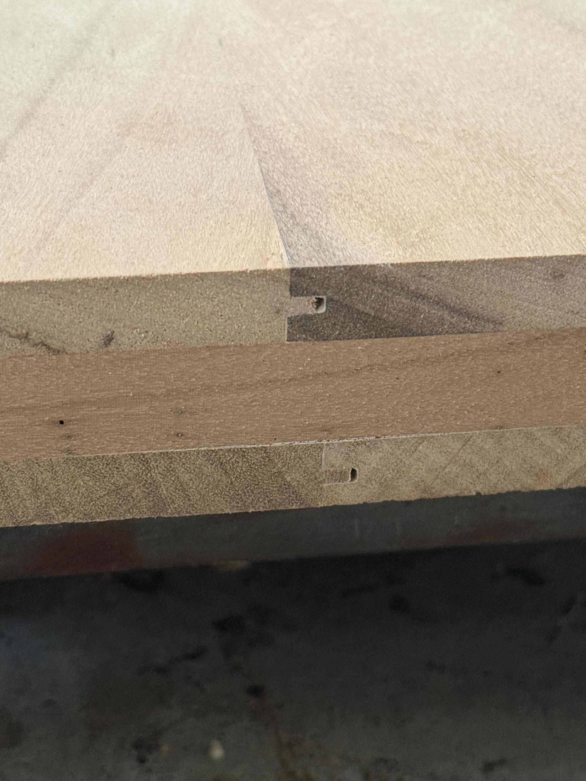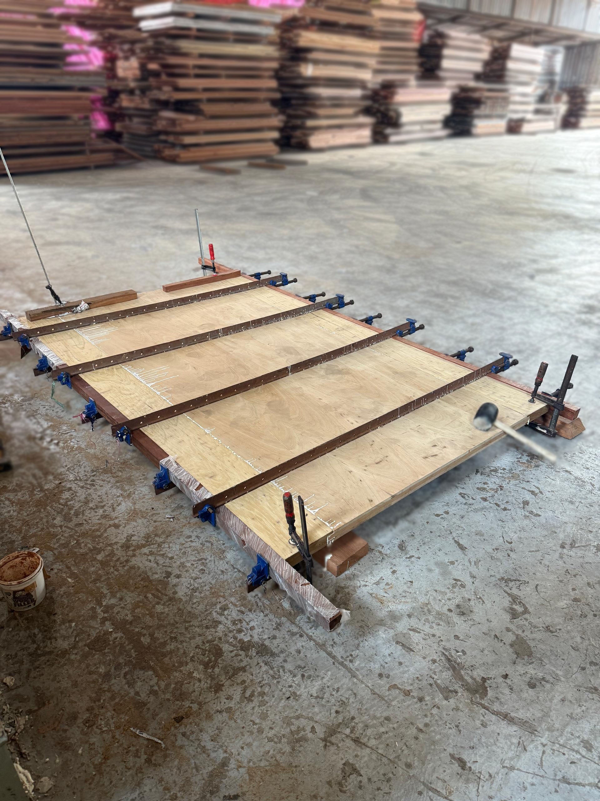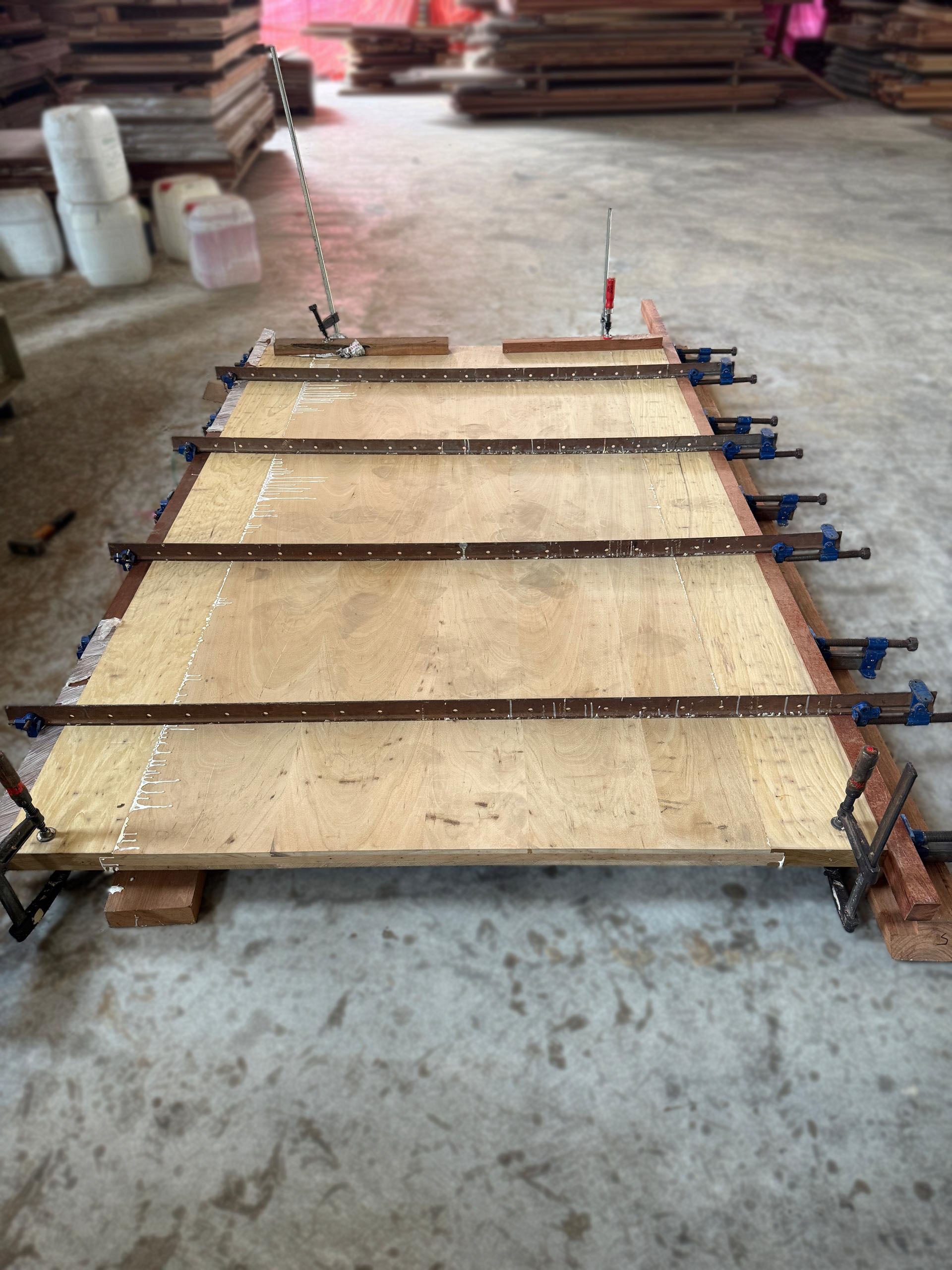 • Full solid grade A yellow balau door with plain design and sanding finished, blurred background.